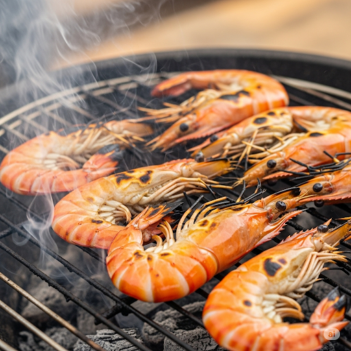 즉석 먹거리 숯불구이, 대하튀김, 대하라면 등 다양한 요리